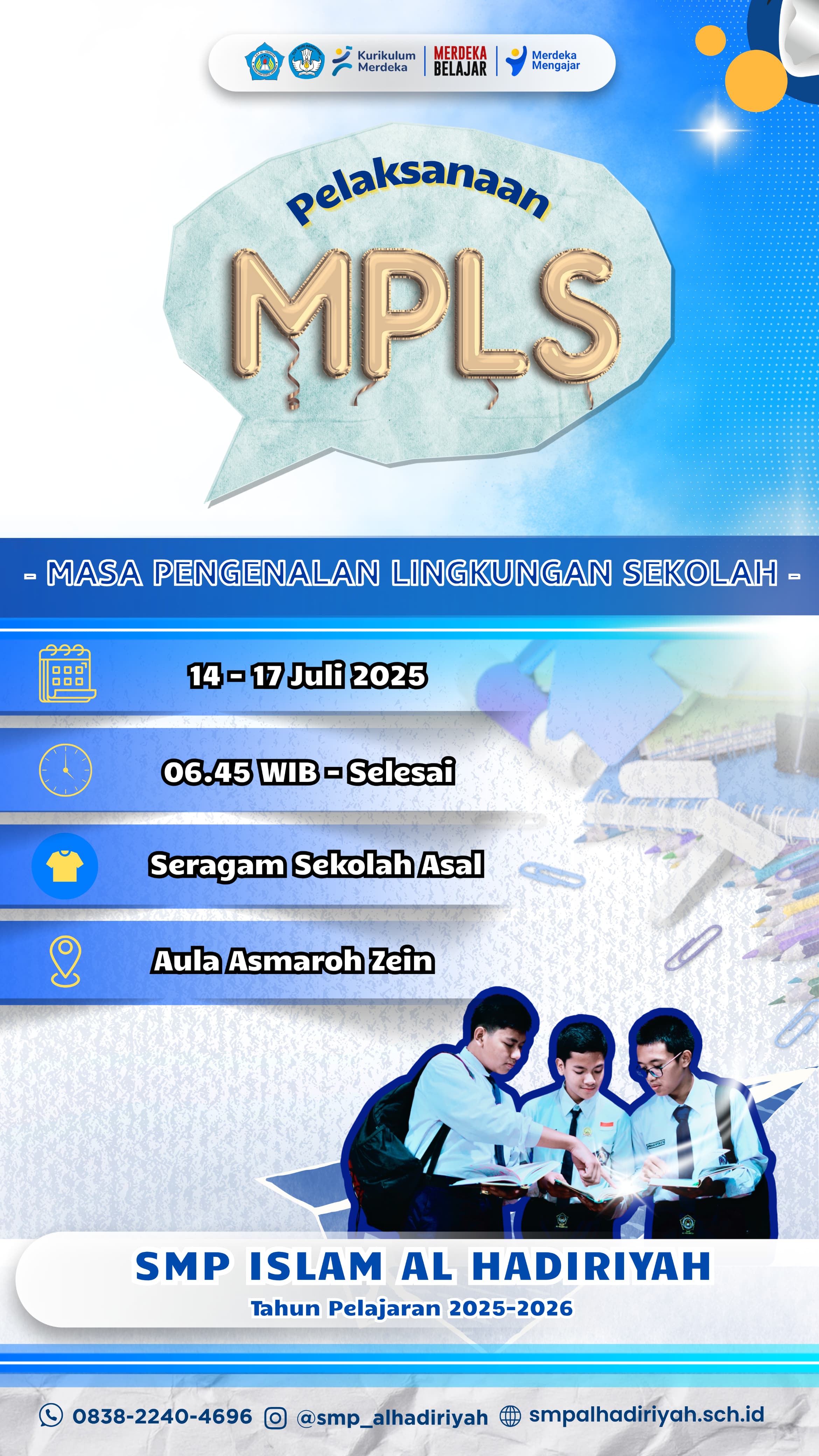 ????Pengumuman Penting untuk Peserta MPLS SMP ISLAM AL HADIRIYAH ????